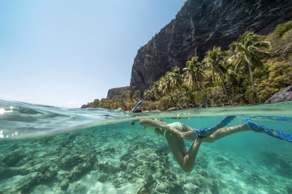 Puis, plage Madama : Une petite plage isolée entourée de falaises rocheuses et des végétaux tropicaux, non loin de celle de Fronton.